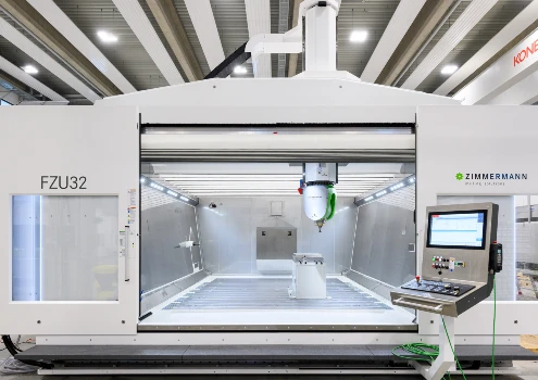 Die FZU32 ist eine bemerkenswert kompakte 5-Achs-Portalfräsmaschine zur Bearbeitung von Aluminium, Faserverbundwerkstoffen, Kunststoffen, Ureol und Stahl. Durch das besonders steife, neu entwickelte mittenführende Portal können wir den steigenden Anforderungen im Modell-, Werkzeug- und Formenbau Rechnung tragen. Dieser thermosymmetrische Aufbau macht die FZU32 weniger anfällig für widrige Umgebungsbedingungen.